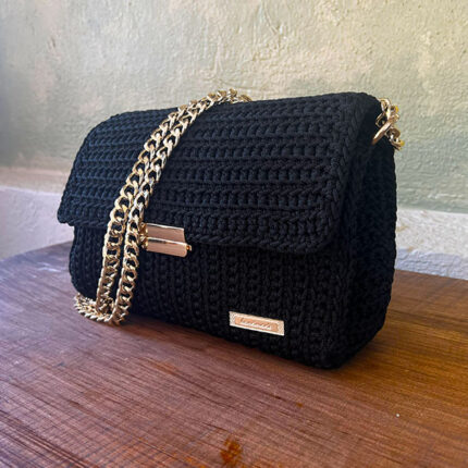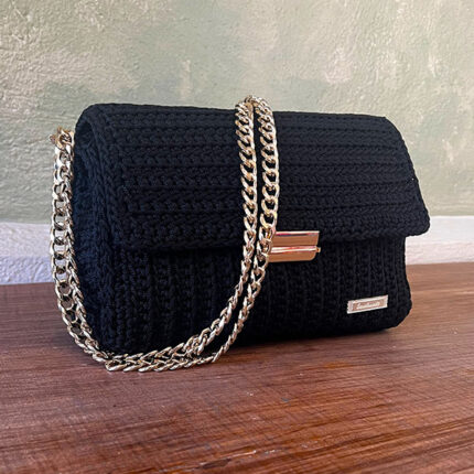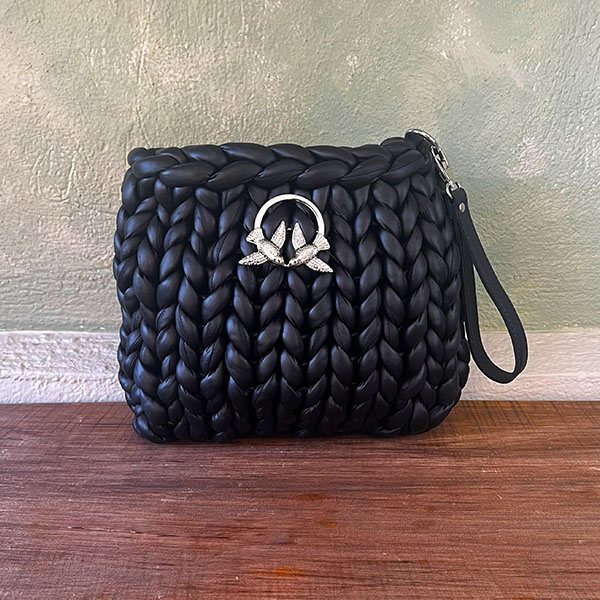 Birdy Noir Pouch – Χειροποίητη Μαύρη Πλεκτή Τσάντα ´Ωμου & Χειρός