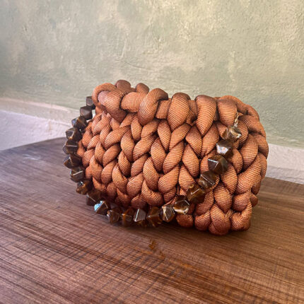 Η Birdy Noir Pouch είναι μια compact, elegant χειροποίητη τσάντα από τη Birdy Series. Η ιδιαίτερη πλεκτή υφή της και το signature μεταλλικό bird clasp δημιουργούν ένα statement κομμάτι, ιδανικό για βραδινές εξόδους και chic εμφανίσεις. Κρατιέται στο χέρι, φοριέται με λουράκι καρπού ή λουράκι ώμου.